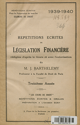 Répétitions écrites de législation financière. Troisième année. 1939-1940 ...