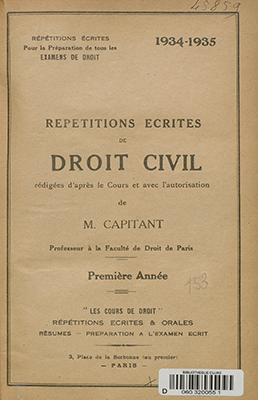 Répétitions écrites de droit civil. Première année. 1934-1935 ...