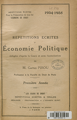 Répétitions écrites d’économie politique. Première année. 1934-1935 ...